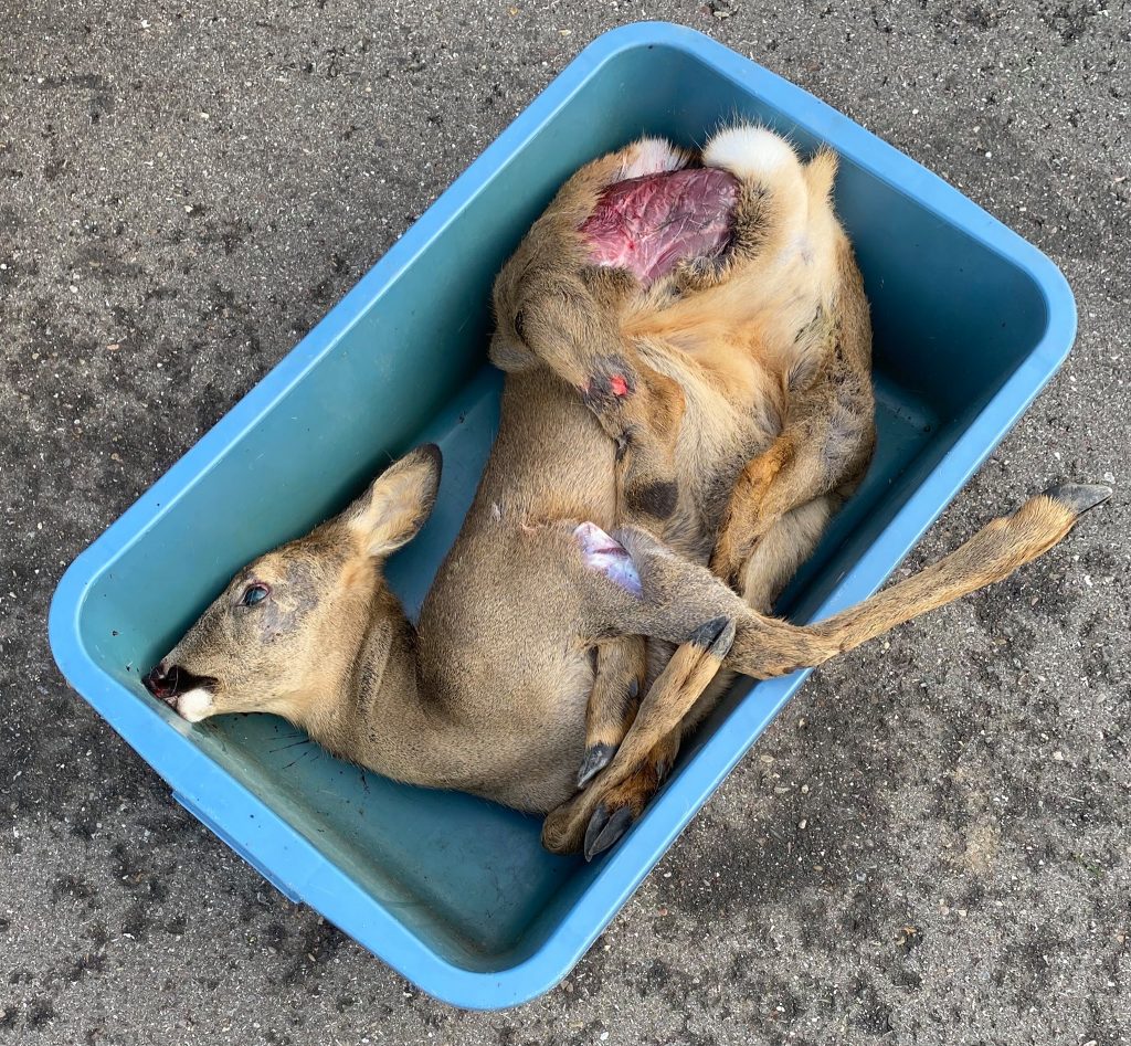 Ich musste nun schon mehrfach, irgendwann in der Nacht angefahrene, noch lebende Rehe oder Wildschweine, die zufällig aufgefunden wurden, am nächsten Tag irgendwann erlösen oder ich konnte ein Reh, dessen beide Hinterläufe gebrochen waren und dass sich sich seit Wochen durch die Gegend geschleppt hat, nur durch den Hinweis eines Landwirts erlösen.